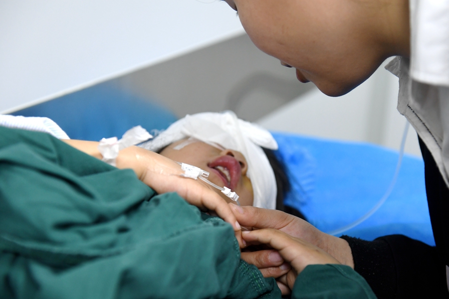 ????母親安慰術后的女孩,鼓勵她過幾天就可以看見了。