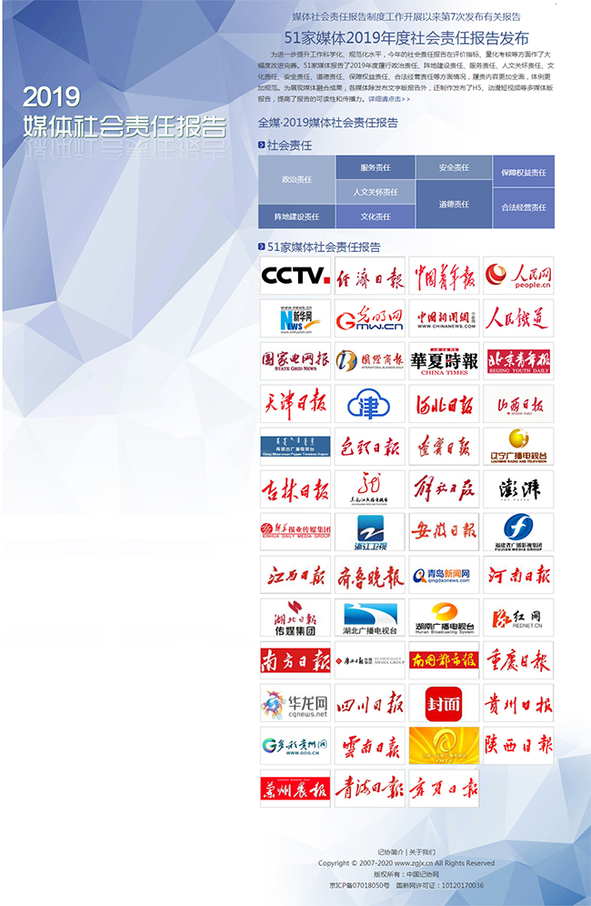 2019年度媒體社會(huì)責(zé)任報(bào)告單位增至51家,包括7家中央主要新聞媒體、4家全國(guó)性行業(yè)類媒體,以及全國(guó)29個(gè)省(區(qū)、市)的40家地方媒體。