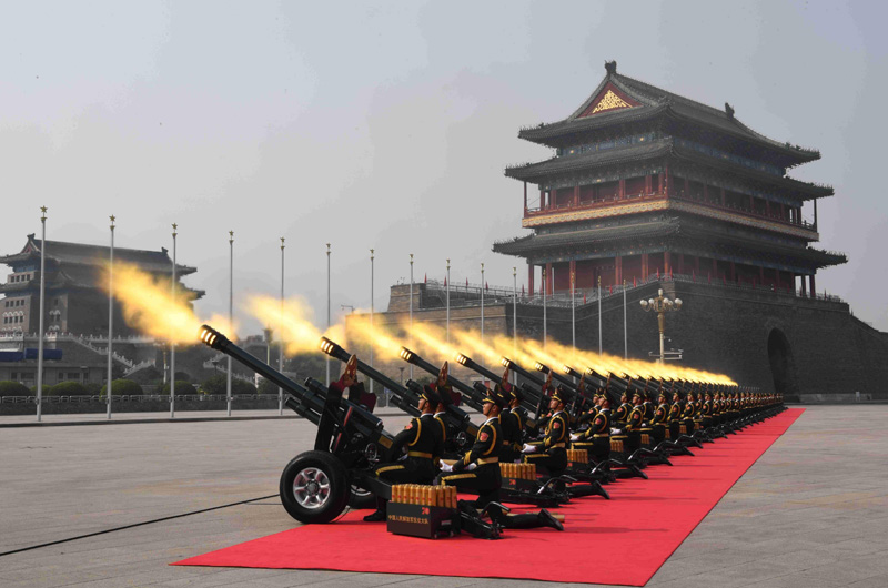 10月1日,慶祝中華人民共和國成立70周年大會在北京天安門廣場隆重舉行。 圖一:中共中央總書記、國家主席、中央軍委主席習近平發(fā)表重要講話并檢閱受閱部隊。這是習近平在天安門城樓上。 圖二:10月1日,慶祝中華人民共和國成立70周年大會在北京天安門廣場隆重舉行。 圖三:這是行進中的儀仗方隊。 圖四:這是禮炮鳴響。 圖五:這是"致敬"方陣。 圖六:這是東風-41核導彈方隊接受檢閱。 圖七:這是空中護旗梯隊。 圖八:這是氣球騰空而起。