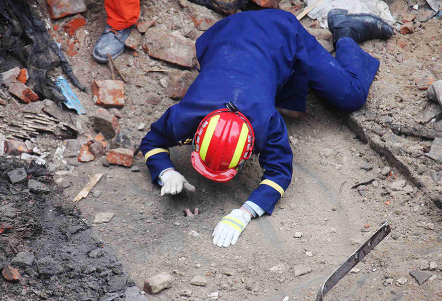 隨后,消防人員通過搜救犬、生命探測儀等工具,繼續搜救其余被困者。當日上午12時許,消防人員發現了一名60歲左右的女性被困者。"當時,她身上壓了兩塊水泥預制板,身下的水泥預制板有裂痕,可能造成二次坍塌。"周小輝說。