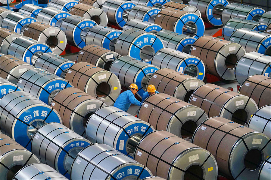 圖八:12月3日,首鋼京唐公司冷軋作業部員工在成品庫查檢產品質量。該公司著力打造企業品牌,產品結構已全面升級,從過去中低端鋼鐵產品轉變為高檔精品板材。