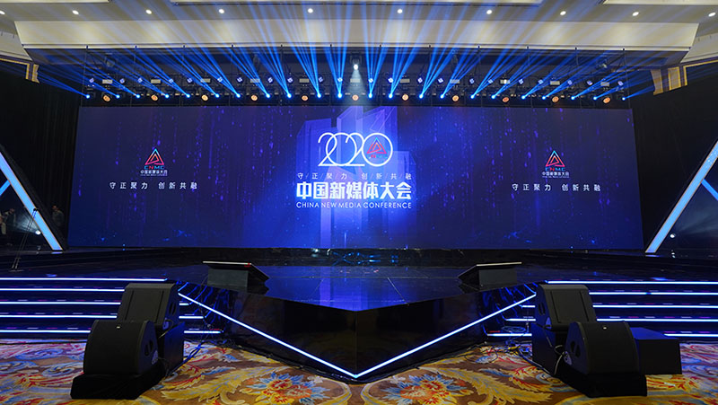11月19日上午九時,2020中國新媒體大會開幕式暨主論壇在湖南長沙舉行。圖為大會會場。