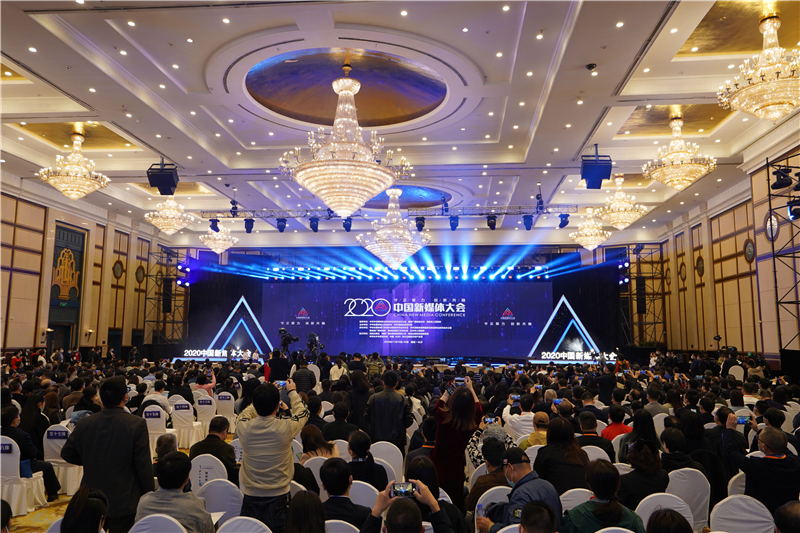 11月19日上午九時,2020中國新媒體大會開幕式暨主論壇在湖南長沙舉行。圖為大會會場。