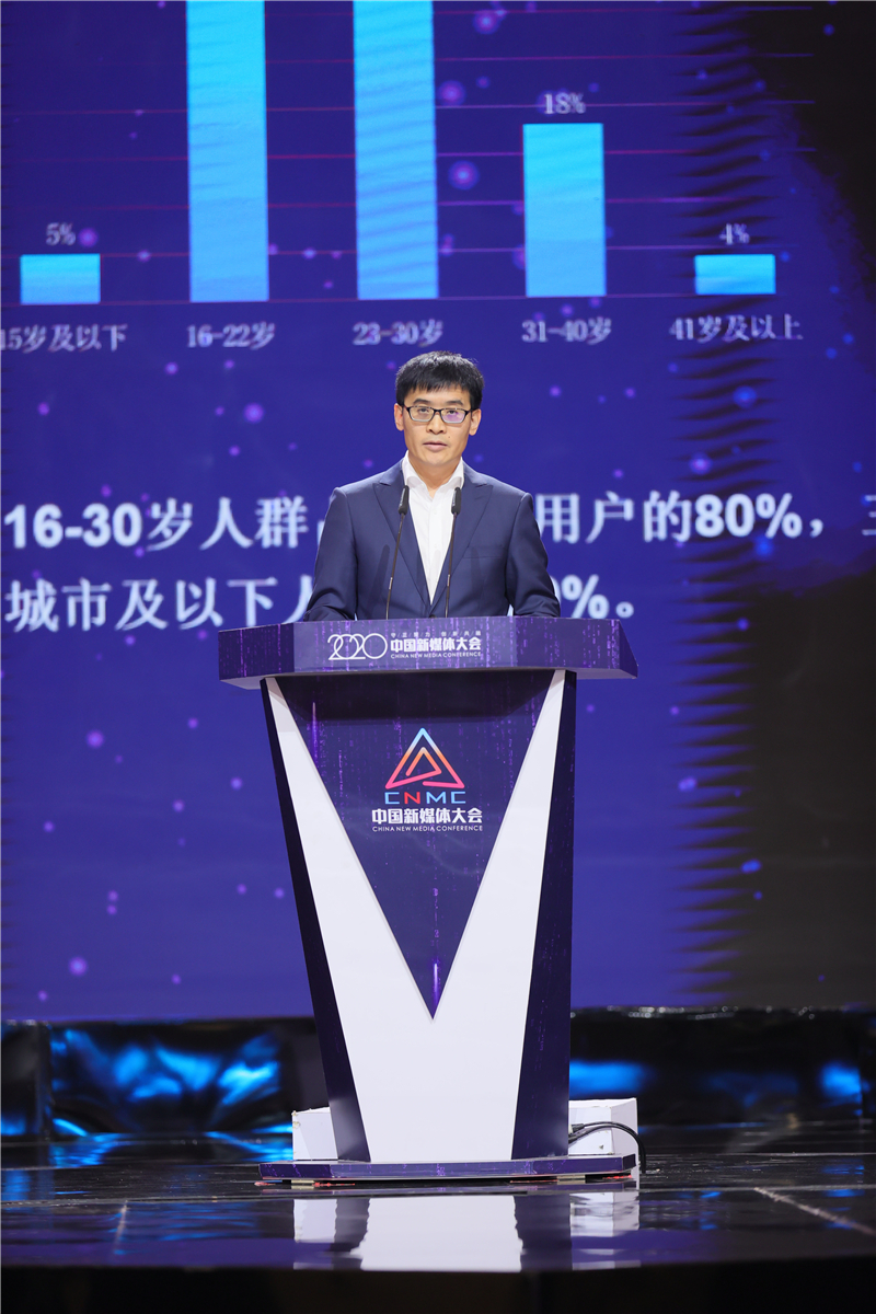 新浪微博高級(jí)副總裁、總編輯曹增輝發(fā)表演講。