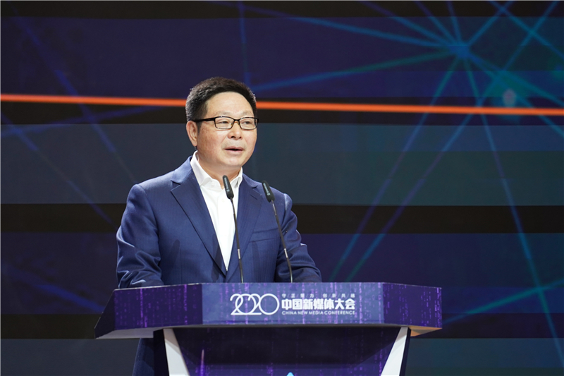 11月19日上午九時,2020中國新媒體大會開幕式暨主論壇在湖南長沙舉行。圖為湖南廣播影視集團有限公司(湖南廣播電視臺)黨委書記、董事長、總編輯張華立發表演講。
