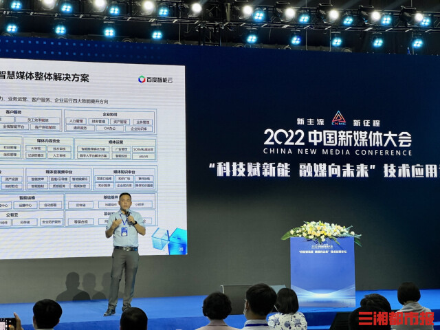 (百度智能云高級解決方案總監周博正在介紹智慧媒體解決方案。李致遠攝)