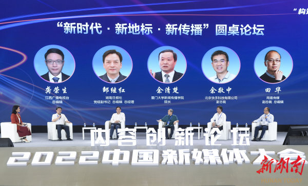 8月30日,2022中國新媒體大會“構筑主流輿論新高地”內容創新論壇上,五位嘉賓以“新時代·新地標·新傳播”為主題對談。湖南日報全媒體記者 辜鵬博 攝