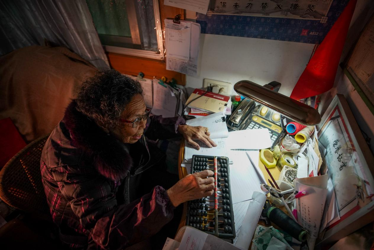 圖五:每天凌晨3時,老人起床,撥動那把跟了她70年的算盤,清點前一天的“營業額”。