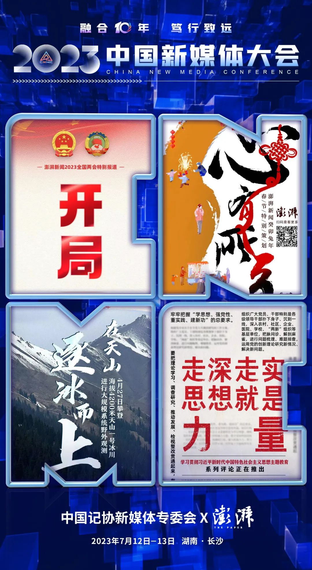 2023中國(guó)新媒體大會(huì)將于7月12日至13日在湖南長(zhǎng)沙召開,中國(guó)記協(xié)新媒體專業(yè)委員會(huì)各成員單位紛紛推出“聯(lián)名海報(bào)”為大會(huì)預(yù)熱。
