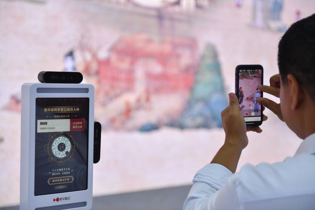 7月12日,參觀者在中國新媒體技術(shù)展上體驗文化數(shù)字化操作系統(tǒng)。新華社記者 陳澤國 攝