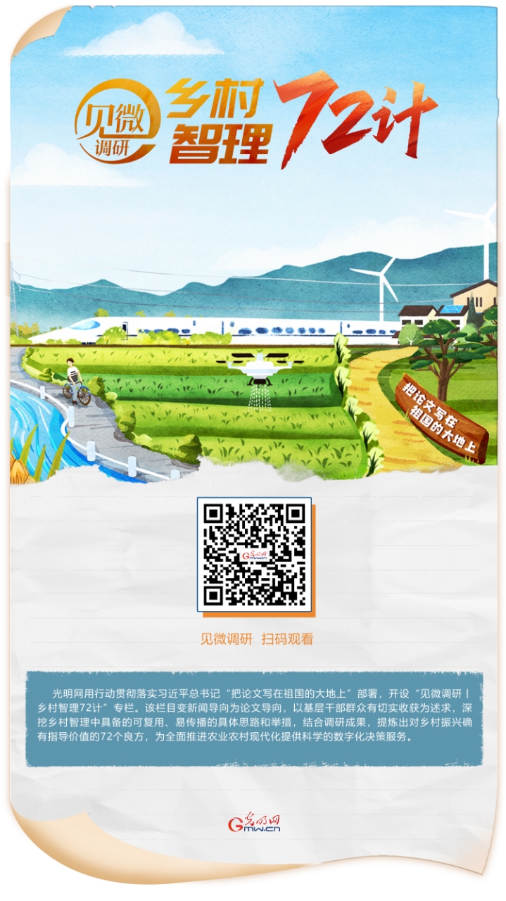 以深入調研為基礎,深挖鄉村“智理”中可復用、易傳播的具體思路和舉措,提煉出對鄉村振興有指導價值的72個良方,為全面推進農業農村現代化提供科學的數字化決策服務。入調研為基礎,深挖鄉村“智理”中可復用、易傳播的具體思路和舉措,提煉出對鄉村振興有指導價值的72個良方,為全面推進農業農村現代化提供科學的數字化決策服務。