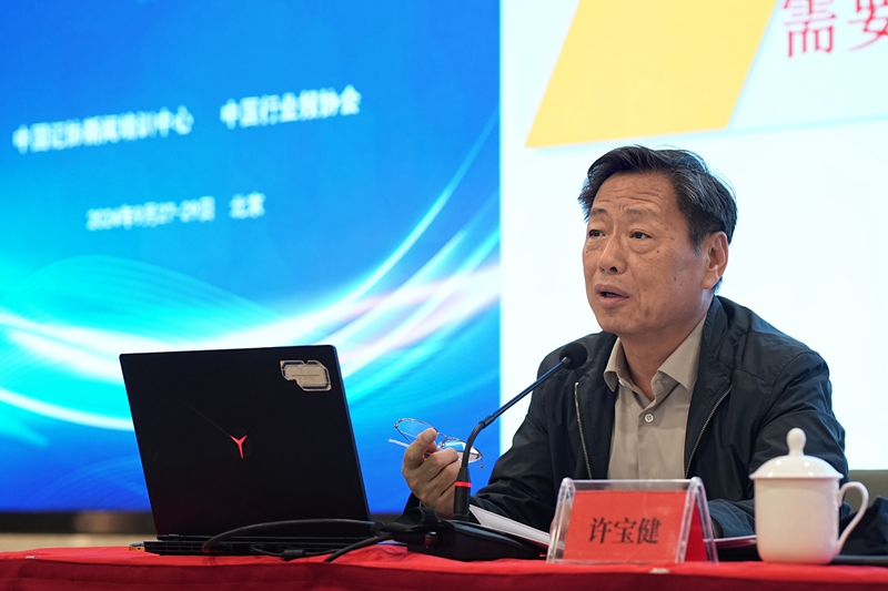 中國行業(yè)報協(xié)會會長張超文為學(xué)員講授了第一堂課。他從“深刻學(xué)習(xí)領(lǐng)會習(xí)近平文化思想”“解析參評中國新聞獎要素”“努力提高行業(yè)媒體新聞報道水平”等方面,講授了《深入學(xué)習(xí)領(lǐng)會習(xí)近平文化思想 不斷創(chuàng)作更多精品力作》有關(guān)內(nèi)容。