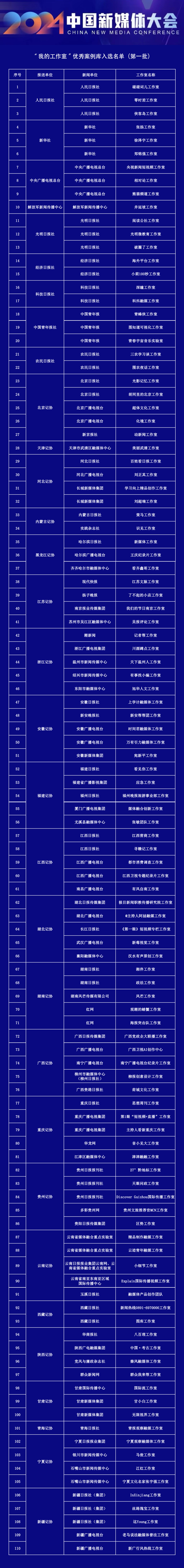 近年來,媒體融合發展演變出“工作室”形態,許多媒體發揮人才優勢,組建具有主流特質、個性特色、靈活特點的工作室,推出了一批受眾喜愛的個性化作品。2024中國新媒體大會于10月15日在湖南長沙開幕,大會設置“推動全媒體生產、促進全媒體傳播”內容創新論壇,啟動“我的工作室”優秀案例征集展示活動。