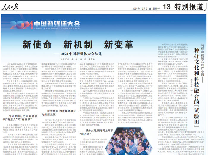 人民日報《新使命 新機制 新變革——2024中國新媒體大會綜述》