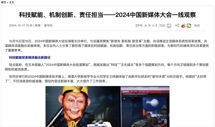 新華社《科技賦能、機制創新、責任擔當——2024中國新媒體大會一線觀察》