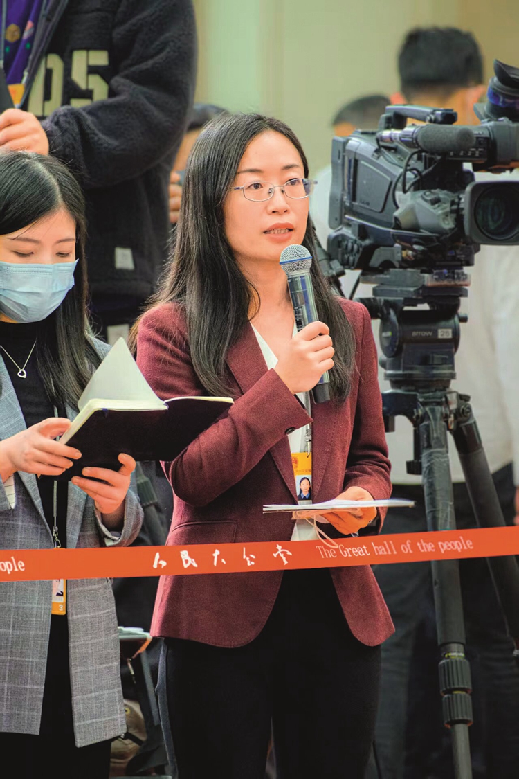 熊丽在2023年全国两会首场“部长通道”上提问。
