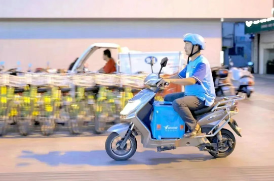 “外卖诗人”王计兵在工作。/央视新闻截图