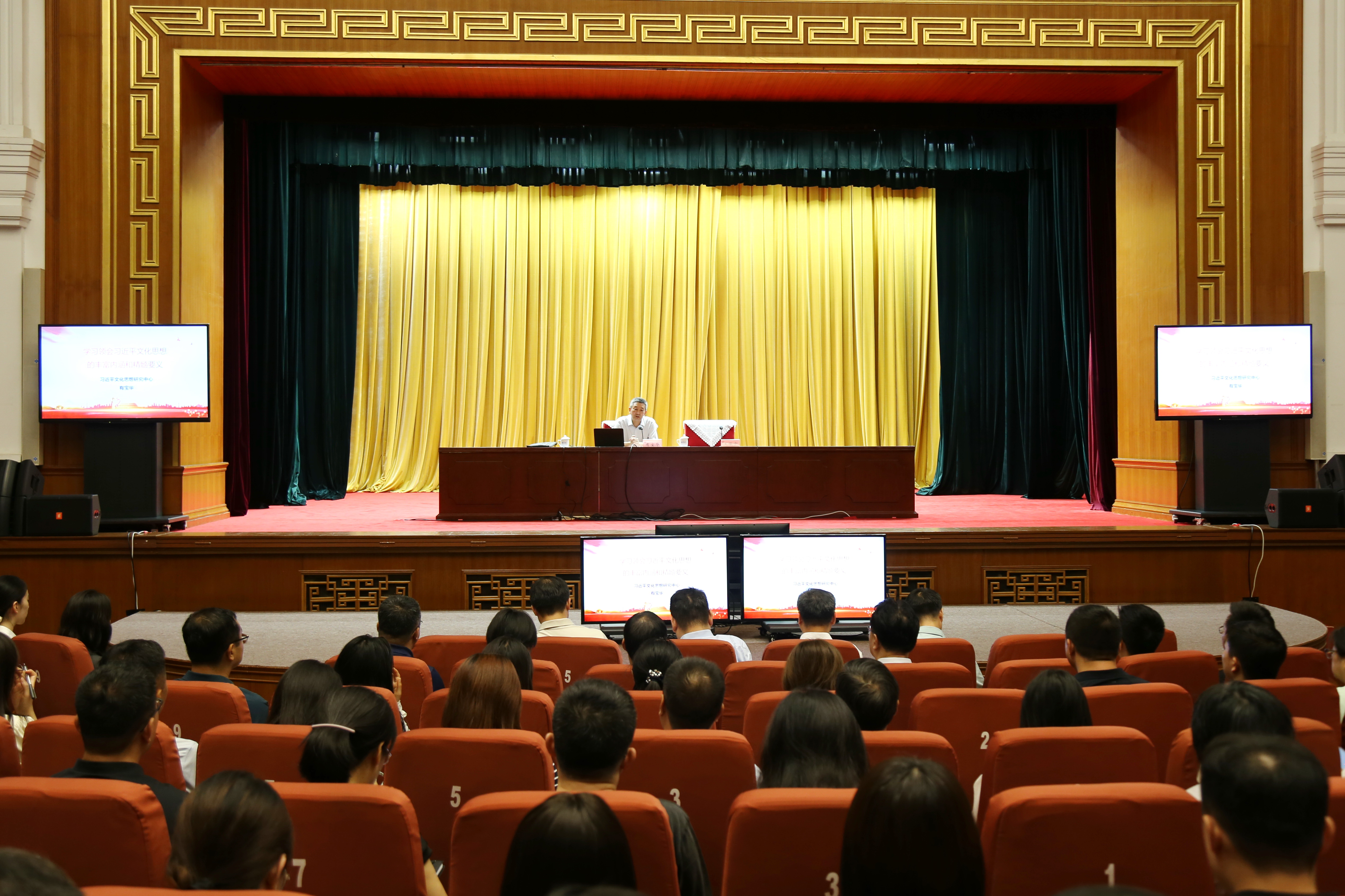 7日上午,培训班全体学员在新华社礼堂参加了“清凉山讲堂”第二讲,现场聆听了全国宣传干部学院党委书记、常务副院长,习近平文化思想研究中心副秘书长有宝华关于学深悟透习近平文化思想的专题授课。