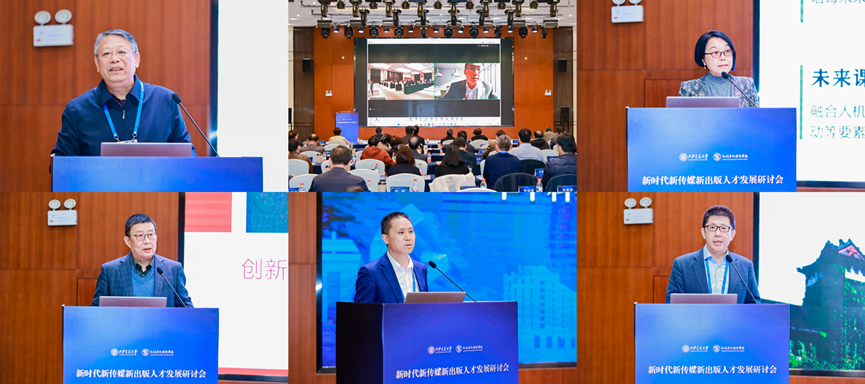 在主旨发言环节,中央民族大学新闻与传播学院特聘院长张昆作《实践教育与学生专业能力的养成》报告,中国传媒大学本科生院院长王晓红作《锻造未来新闻课堂 培育卓越新闻人才》报告,北京大学新闻与传播学院院长陈刚作《创新探索,特色发展,培养新闻传播领域的国家栋梁》报告,华中科技大学人文社科处处长张明新作《当下新闻传播教育发展的三重趋势》报告,南京大学新闻传播学院执行院长张红军作《智能传播时代新闻传播教育中的六组辩证关系》报告,中国传媒大学新闻学院院长隋岩在线上作《浅谈新时代卓越新闻传播人才培养路径》报告。专家们围绕“新时代卓越新闻人才培养”这一核心,结合研究与实践,从人才培养路径、核心能力锻造等方面分享见解,为新时代传媒出版人才发展注入新动能。