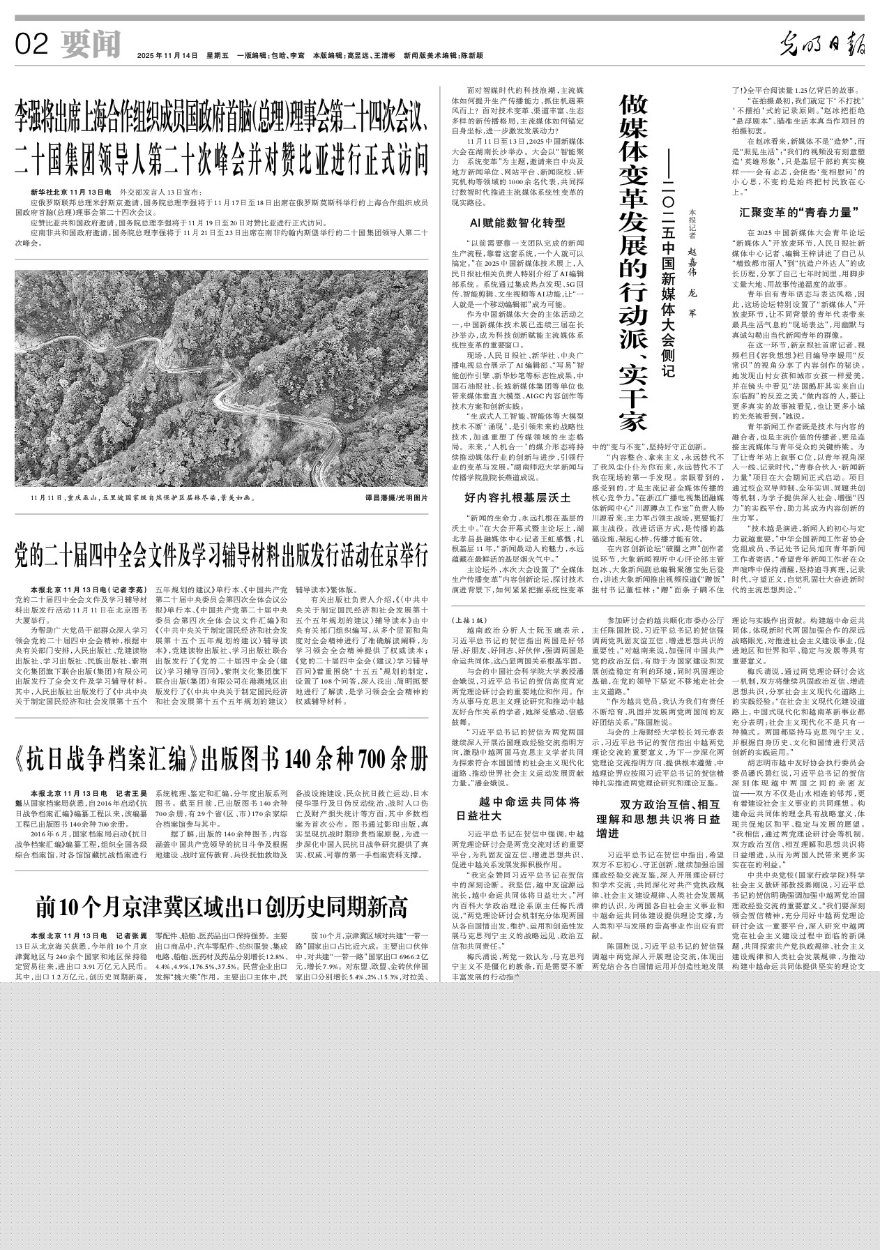 11月11日至13日,2025中国新媒体大会在湖南长沙举办。大会以“智能聚力 系统变革”为主题,邀请来自中央及地方新闻单位、网站平台、新闻院校、研究机构等领域的1000余名代表,共同探讨数智时代推进主流媒体系统性变革的现实路径。