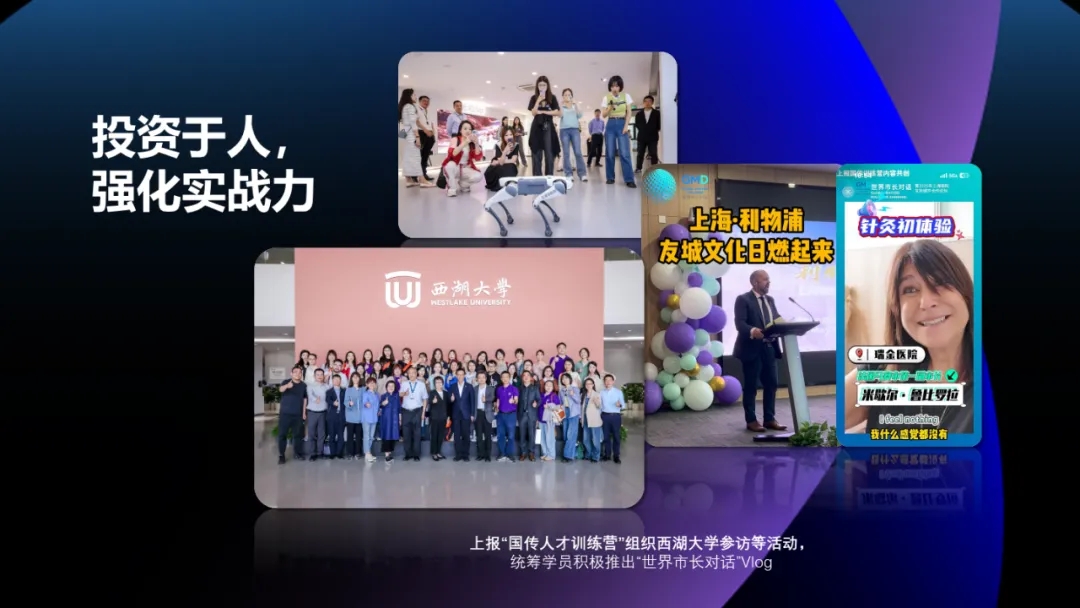 2024年,集团创新推出“国传人才训练营”,以“训战结合”模式强化实战能力,配套海外传播平台资源扶持,鼓励学员主动进入国际舆论场有效发声。今年,第二期“国传人才训练营”进一步深度参与集团国传重点项目,在“世界市长对话”等一些重要活动中,国传营营员以个人融媒Vlog形式进行创作,在海内外社交媒体平台积极开展灵动、鲜活的传播。